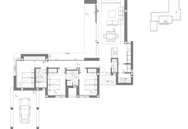 Diese wunderschöne, einzigartige Villa befindet sich in Cumbre del Sol und bietet einen atemberaubenden Blick auf das azurblaue Mittelmeer und die Klippen von Benitachell. Idyllische Strände sind weniger als einen Kilometer entfernt, das touristische Fischerdorf Moraira nur 10 Autominuten und der Sandstrand von Jávea knapp 20 Autominuten. Die Villa ist nach Südwesten ausgerichtet und besteht aus einer Etage, die für höchsten Komfort sorgt. Es gibt ein geräumiges Wohn-Esszimmer, eine offene Küche mit angrenzender Waschküche, ein Doppelschlafzimmer mit eigenem Bad und zwei Doppelschlafzimmer, die sich ein Bad teilen. Vom Wohnzimmer aus haben Sie über große Schiebefenster direkten Zugang zur Terrasse am Infinity-Pool. Die Villa befindet sich derzeit im Bau.