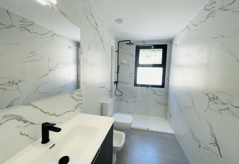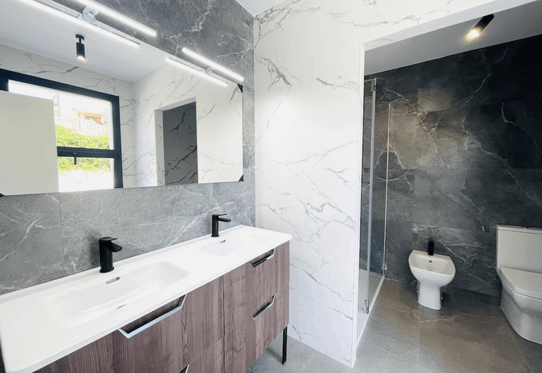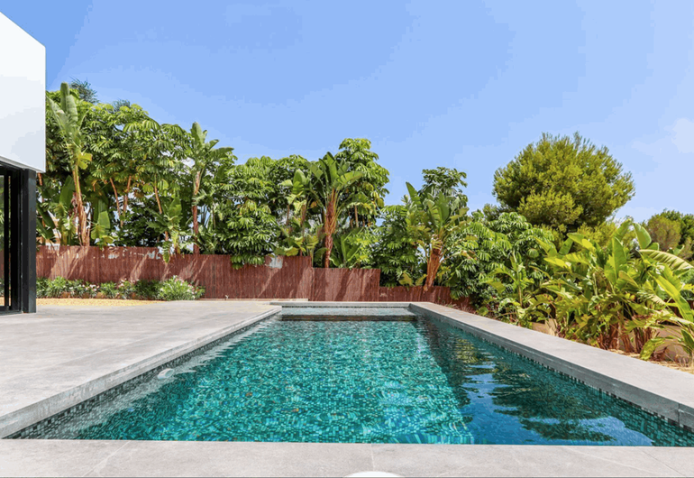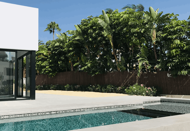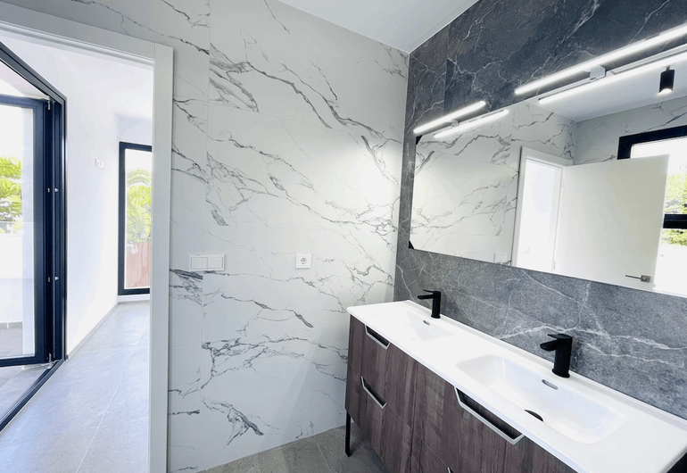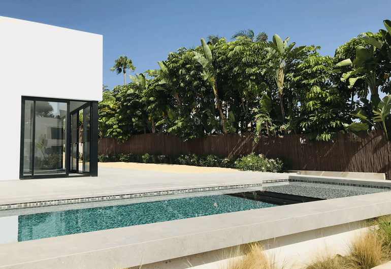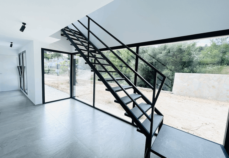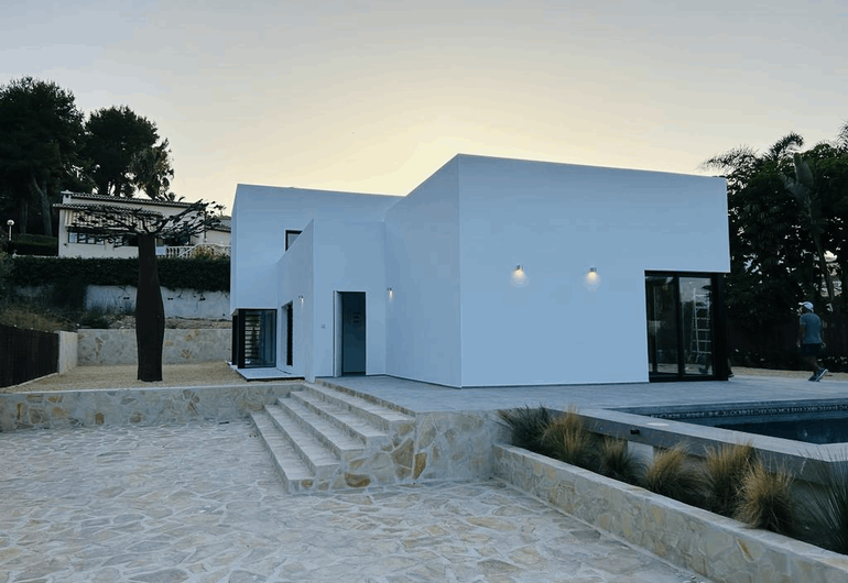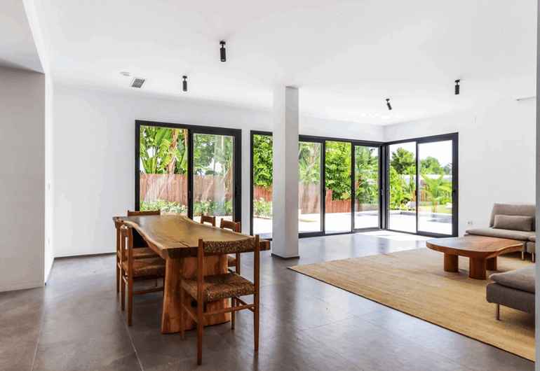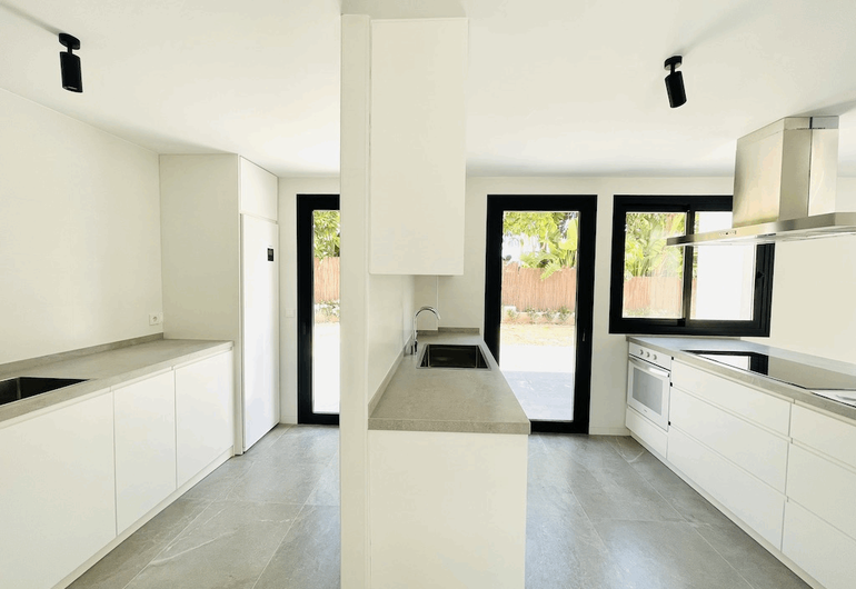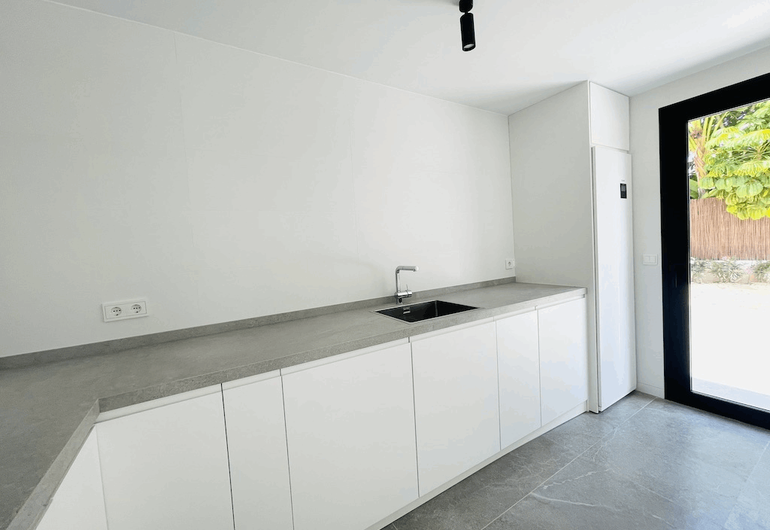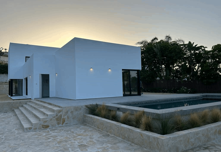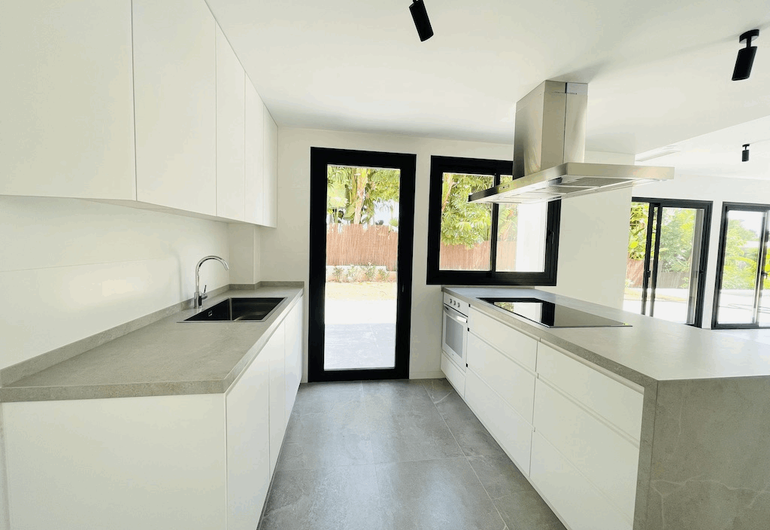 Upon entering, you will be greeted by a spacious living-dining room that connects to the naya and the pool terrace. This space is perfect for enjoying moments of relaxation and fun with family and friends. The intelligent layout of the house ensures a perfect flow between the indoor and outdoor spaces.